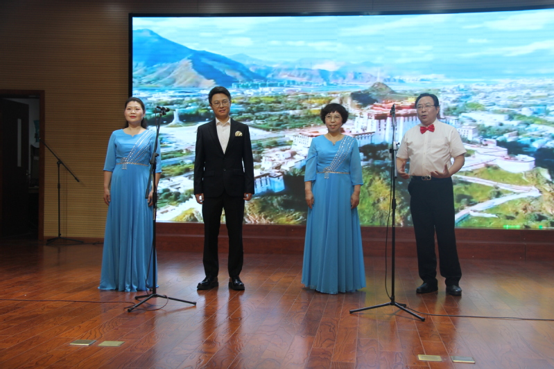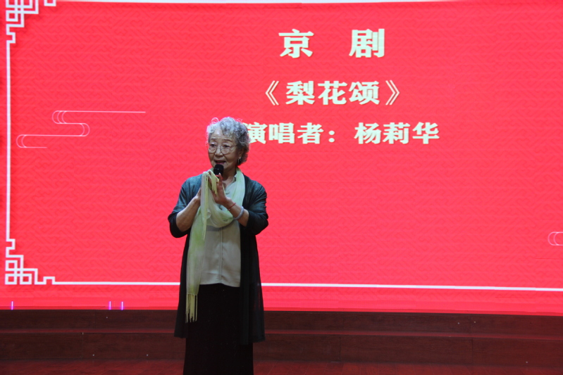 演出现场,声乐提高班的学员徐国均和王孝天老师等人带来小合唱《我爱你中国》,学员王虹独唱京剧《红灯记》选段,女声小合唱《美丽的梦神》、男声独唱《把一切献给党》等歌曲将演出气氛推向高潮。一首首慷慨激昂、耳熟能详的旋律,讴歌了党的光辉历程,表达了对祖国繁荣昌盛的美好祝愿。演出在银龄学习中心文艺班及福利院老人的大合唱《阳光路上》圆满落幕。