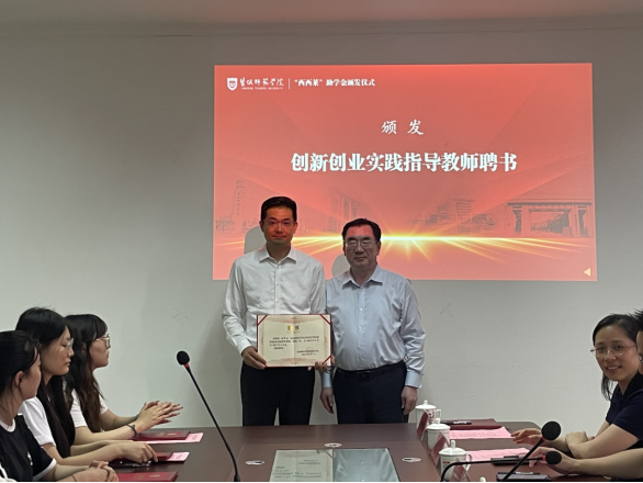 仪式上,发展改革办公室主任、高等教育研究所所长丁炫凯宣读“西西莱”助学金颁发决定。庞波、席军波等领导为获助学金的学生颁发荣誉证书。庞波为席军波颁发创新创业实践指导教师聘书。外国语学院陈颖同学代表受资助学生发言。