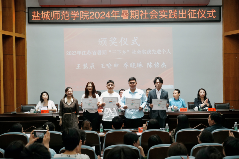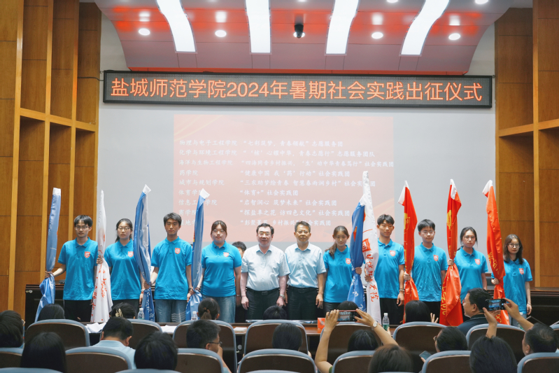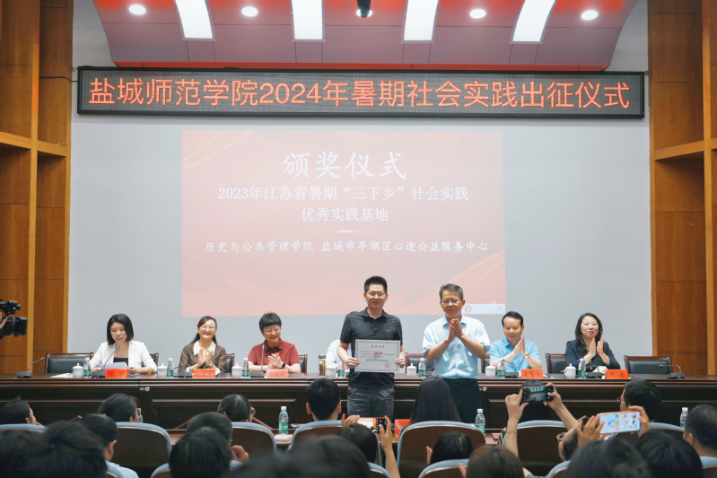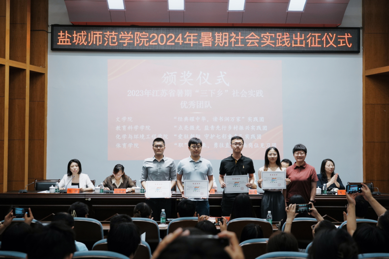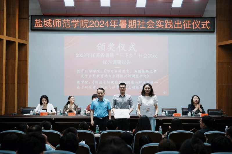 庞波、丁长海共同为开元官网2024年暑期“三下乡”重点社会实践团队授旗。与会嘉宾为2023年江苏省暑期“三下乡”社会实践优秀实践基地、优秀团队、优秀调研报告、先进个人颁发证书。周莹为大学生志愿者颁发亭湖区青年发展型城市“青春观察员”聘书。梁祯晏、陈志鹏、邵馨瑜分别作为青年团干、指导教师和志愿者代表作交流发言。