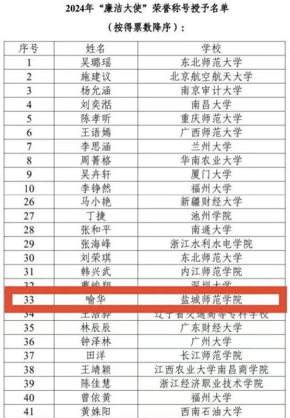 近日,由中国管理现代化研究会廉政分会、全国大学生廉洁社团网络、东北师范大学政法学院联合主办的2024年廉洁大使评选结果公布,经个人申请、组织推荐、资格审查、投票评审、综合专家评审等多个环节,开元官网清风社喻华同学荣获2024年全国“廉洁大使”称号。