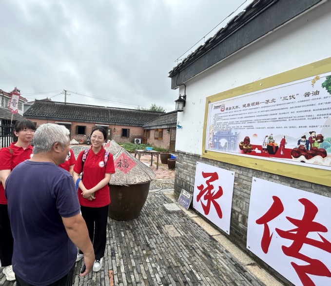 物理与电子工程学院“薪火相传,红心筑梦”实践团成员走进第二批“全国乡村治理示范村”——射阳县新坍镇新潮村。在村委会工作人员的带领下,实践团成员走进新潮九队,学习感悟全国劳动模范巴一恺带领广大干部群众不畏艰难、敢闯敢干的“战长滩”精神。随后,团队成员深入当地农户家中,与农户共同准备食材,制作“忆苦思甜”,大家围坐在一起分享了《红米饭,南瓜汤》的故事,畅谈生活,其乐融融。