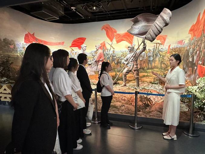 7月26日,外国语学院“红色印记”寻访团走进无锡博物院革命烈士馆开展“赓续红色血脉 传承红色基因”暑期社会实践活动,探寻自五四运动至无锡解放以来波澜壮阔的革命历程。实践团成员通过观看展览、听取讲解,深入了解无锡的红色革命历史,深刻感受了无锡革命先烈的英勇事迹和革命精神。在博物馆的红色革命展区,实践团看到了许多珍贵的文物和历史照片,这些展品记录了无锡人民在革命时期所经历的苦难和奋斗,反映了无锡人民在革命战争中的英勇事迹。通过此次红色研学,大家从丰富的红色资源中汲取了智慧和力量,持续激发了青年学子爱党爱国情怀。
