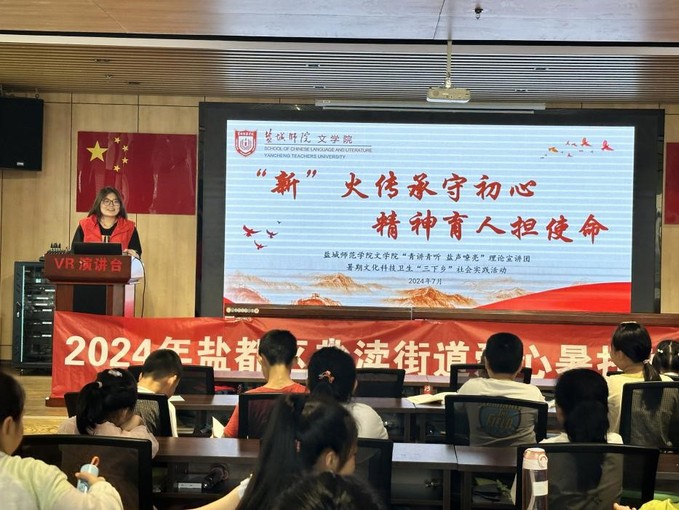 文学院充分发挥专业所长,组建“青讲青听,盐声嘹亮”理论宣讲实践团,深入基层,强化校社共建,致力于打造“铁军魂 盐城红”红色文化品牌。实践团成员走进盐城市博物馆、盐都区盐渎街道等地开展“追寻红色印记 传承红色基因”“高唱红色歌曲,奏响‘青春时代华章’”等志愿服务活动,推出“文化大美,暑期传承”爱心暑托班课程,团队成员以实干担当时代重任,为全面推进中国式现代化盐城新实践贡献青春力量。