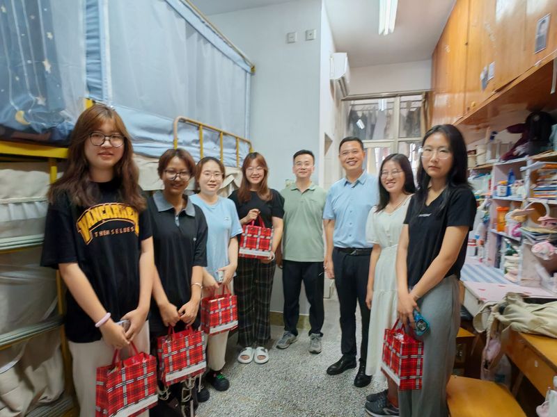 9月16日上午,外国语学院班主任辅导员一行带着精心准备的节日礼盒来到学生宿舍区,逐一走访中秋留校的学生宿舍,将学院的关怀与祝福送到他们身边。在走访过程中,师生亲切交谈,畅谈在校学习生活情况,分享中秋节不同的风俗习惯,让大家深切感受到了中秋的喜庆和学院的关心。