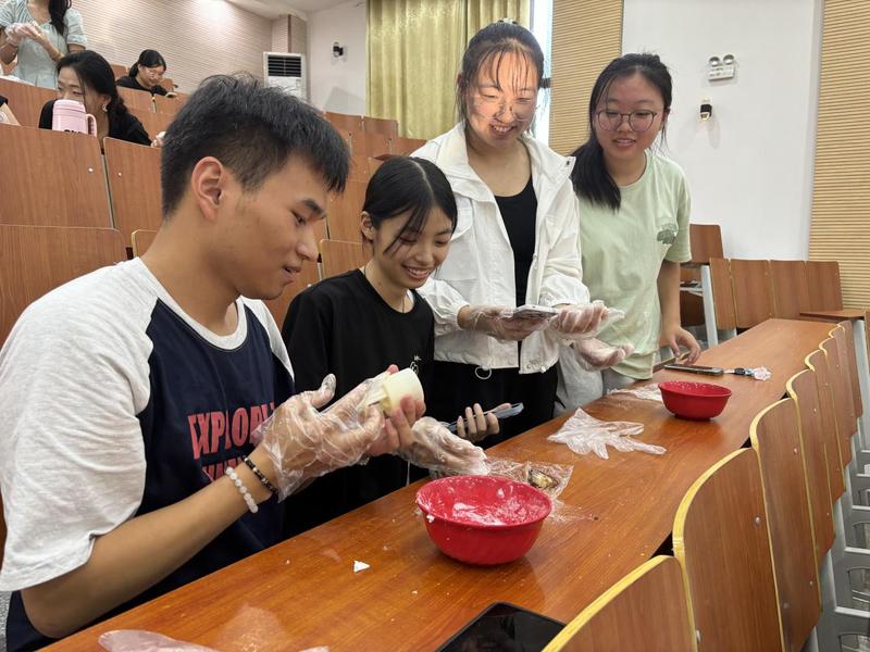 9月12日下午,化学与环境工程学院举办“月饼飘香迎中秋,民族团结齐奋进”——民族学生中秋主题活动。现场来自不同省份的45名少数民族学生围坐在一起,大家逐一分享各自民族的特色中秋民俗,畅谈在学校的学习生活感受,并在专业甜品师傅的指导下,师生齐动手,一同参与月饼制作。从揉面、包馅到压模,每一个步骤大家都一丝不苟,跟着师傅学得有模有样,共同品味自己亲手制作的月饼,感受中秋佳节的温馨氛围。