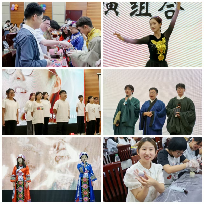 活动现场气氛热烈,欢声笑语不断。来自苗族、回族、侗族等少数民族预科生展示了别具特色的民族服饰风采秀,国色今人汉服社成员倾情朗诵《中秋月·中华情》。现场师生共同参与月饼制作体验,揉面团、选馅料、包馅料、定型,让制作过程中感受中国优秀传统文化的魅力、体会中秋团圆的意义……联欢会在预科班师生共同深情演唱《我和我的祖国》中画上圆满的句号。