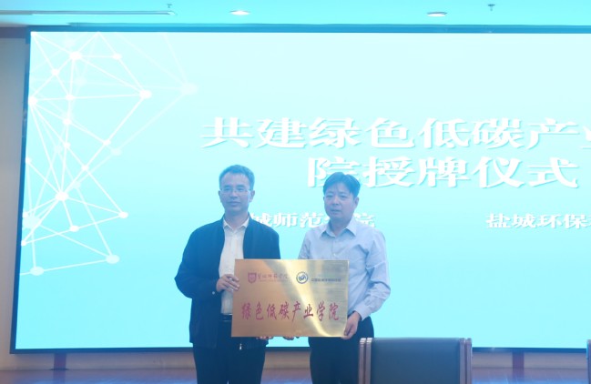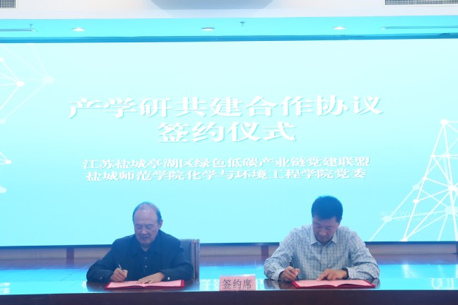 会上,袁鹰代表盐城环保科技城管委会介绍园区情况,化学与环境工程学院党委副书记、院长王彦卿介绍化学与环境工程学院和绿色低碳学院的学科建设、师资队伍、科研工作与社会服务等方面的情况,并与盐城环保科技城管委会代表共同签署共建绿色低碳产业学院合作协议。