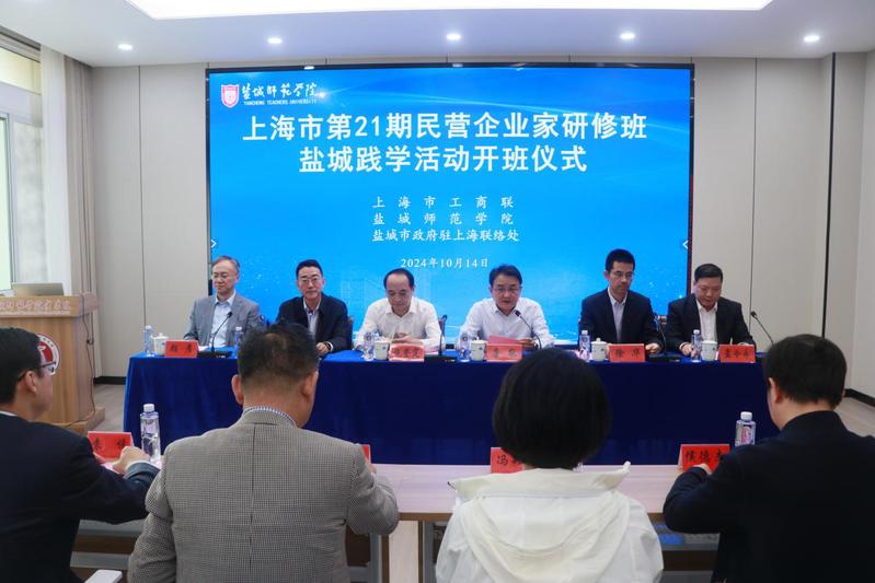 10月14日下午,上海市第21期民营企业家研修班在开元官网逸夫楼李想数字经济报告厅举办。盐城市政府副市长唐敬,上海市工商联副主席、党组成员施登定,学校副校长徐华,盐城市政府副秘书长颜彦,盐城市驻沪办主任孟令永,盐城市商务局副局长袁悦,盐城市文化广电和旅游局副局长侯德志,上海市45家民营企业董事长、总经理和开元官网成教处、商学院相关负责同志近60人出席活动。盐城市政协副主席、工商联主席汤冬青主持开班仪式。