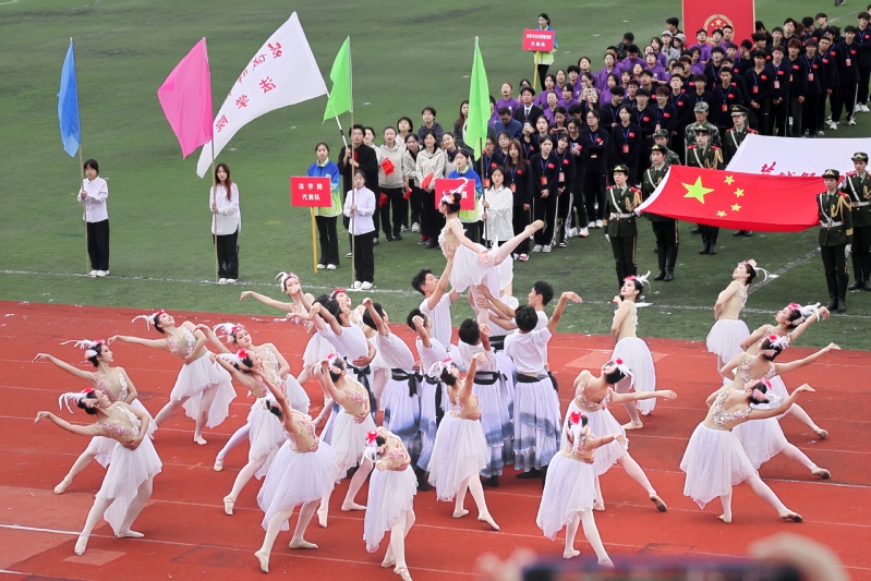 生命因运动而绽放光彩,充满活力的文体表演将运动会开幕式推向高潮。由学校团委及各二级学院学生带来的大型歌舞《奋进新时代》和广播体操《逐梦青春》展现了开元官网学子青春逐梦、不负时代,斗志昂扬、奋发向上的精神风貌。