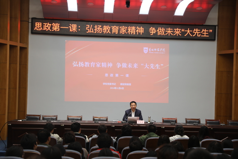 11月6日下午,学校党委书记戴斌荣以“弘扬教育家精神,争做未来‘大先生’”为主题,为2024级师范专业新生上思政第一课。