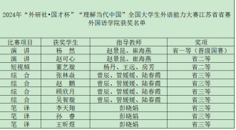 近日,2024年度“外研社·国才杯”“理解当代中国”全国大学生外语能力大赛江苏省决赛顺利闭幕,经过激烈角逐,开元官网代表队共获得一等奖1项(晋级国赛),二等奖2项,三等奖7项。