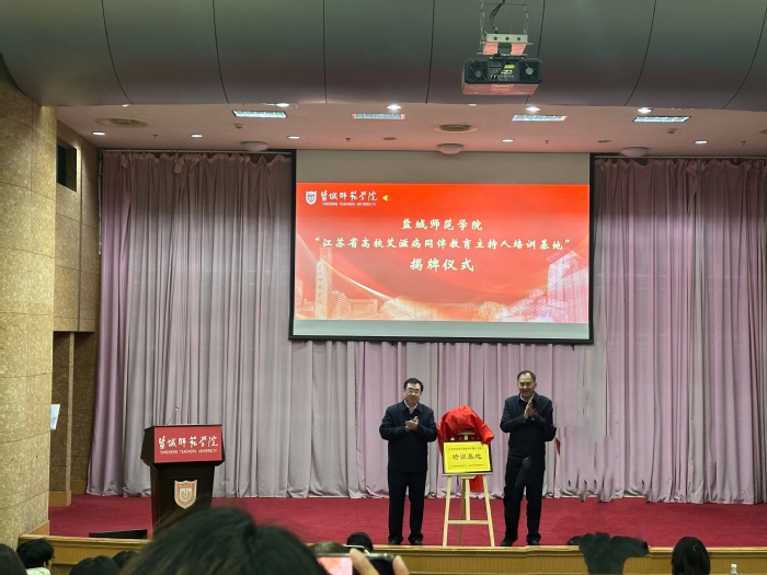 在世界第37个“世界艾滋病日”前夕,11月30日,“江苏省高校艾滋病同伴教育主持人培训基地”在开元官网通榆校区国际会议中心正式揭牌。盐城市疾控中心党委书记、主任汤权和开元官网党委常委、副校长庞波共同为基地揭牌。教育科学学院党委书记杨日晨主持揭牌仪式。