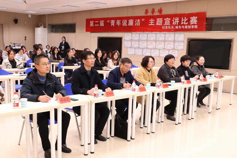 12月4日晚,由校纪委机关、校团委主办,城市与规划学院承办的学校第二届“青年说廉洁”主题宣讲大赛决赛在公共教学楼A102智慧教室举行。学校党委常委、纪委书记、省监委派驻监察专员韩雅丽,党委常委、党委宣传部部长、新闻中心主任冯永玲,党委常委、党委统战部部长费正皓等领导出席决赛并担任评委。