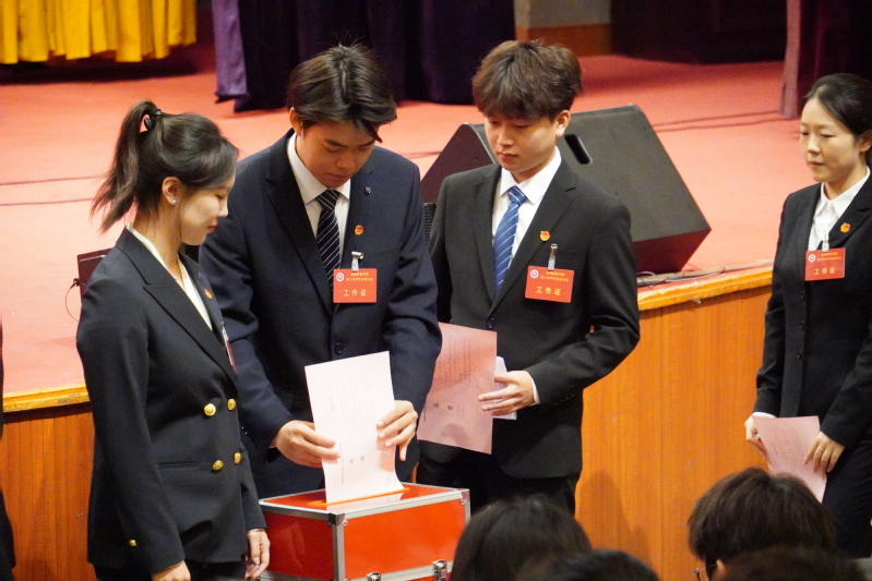 会议经不记名公开投票,选举产生33名第十次学生代表大会常任代表。在第十次学生代表大会常任代表第一次全体会议上,选举文学院邵馨瑜、外国语学院史文宜、音乐学院陈铭杰、商学院孙迁宇、物理与电子工程学院张嘉等5名同学为第十届学生会主席团成员。