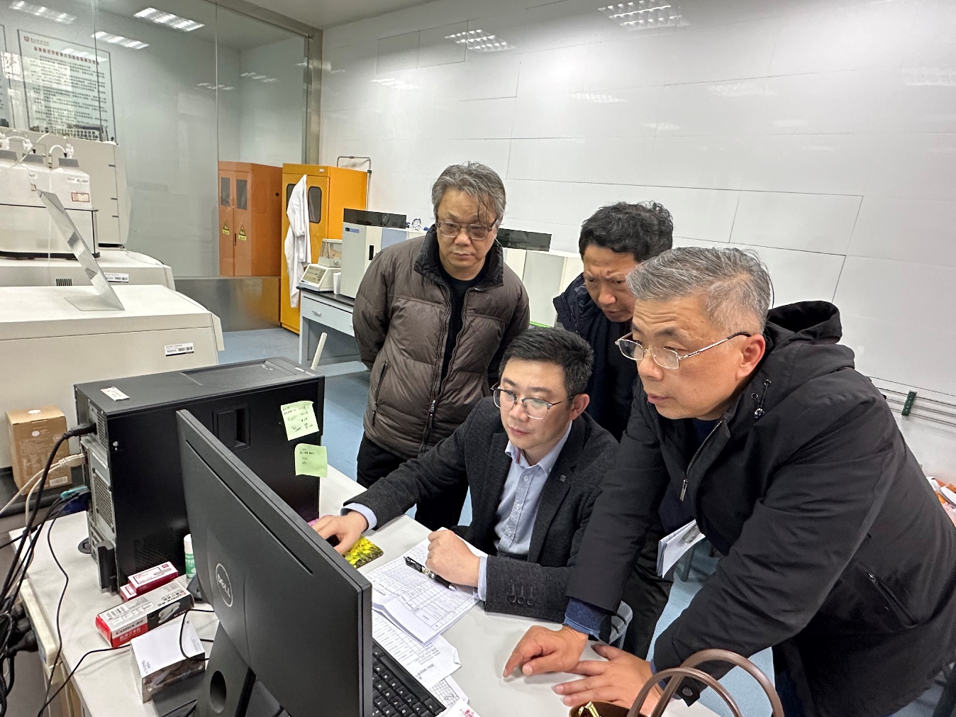 国有资产与实验室管理处相关负责同志详细汇报学校2023年度大型仪器设备开放共享工作情况。专家组对学校大型仪器设备开放共享有关情况开展现场质询并查阅资料,相关部门负责人逐一解答。随后,核查组前往化学与环境工程学院、分析测试中心,随机抽查部分大型仪器,现场核实运行记录及运行状态。