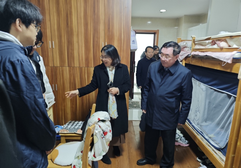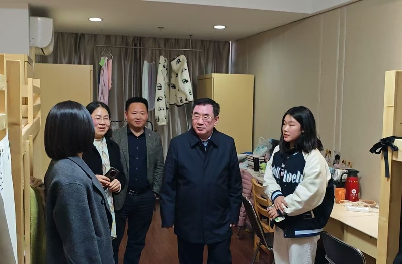 闭幕式后,庞波走访基地菁英公寓学生宿舍,与同学们亲切交谈,深入了解大家的学习生活情况,并指导“一站式”学生社区建设情况。