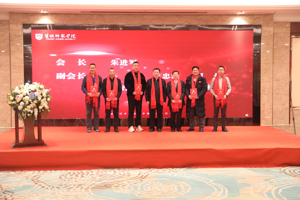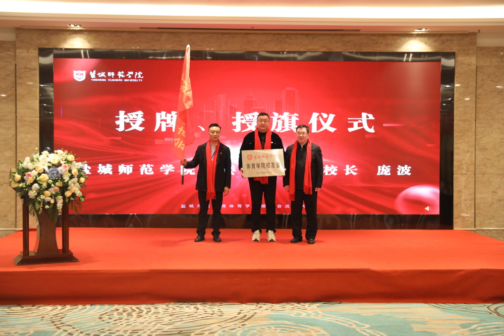 会上,庞波为体育学院校友会授牌、授旗,并为体育学院校友会名誉会长、会长、副会长、秘书长、常务秘书长和副秘书长颁发聘书。