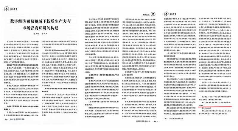 近日,学报编辑部从人大复印资料中心获悉,学报2024年第4期刊发的中国社会科学院财经战略研究院于立新研究员等同志撰写的《数字经济贸易视域下新质生产力与市场营商环境的构建》一文被人大复印资料《国际经济文摘》第4期转载,实现学报近几年人大复印转载零的突破。