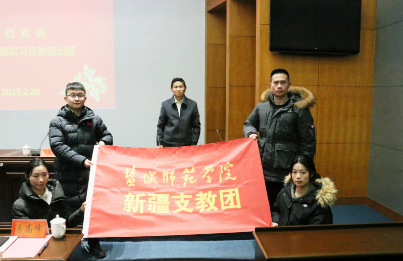 张宏如为“新疆支教团”授团旗,并勉励全体支教团成员秉承盐师精神,坚持立德树人,全身心投入实习支教工作,为新疆教育事业的高质量发展贡献自己的力量。