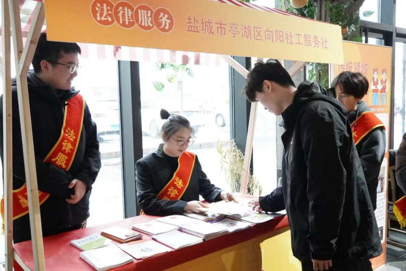 活动现场,法学院志愿者展示“法律援助盐阜行”志愿服务项目,展现青年学生的专业素养和责任担当,让社会公众感受到志愿服务的温暖与力量。此外,大学生法治宣讲团志愿者积极向现场居民普及反诈骗、消防安全知识、法律维权途径等法律知识,赢得居民的广泛好评。