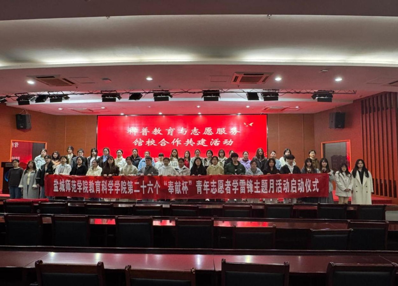 3月1日,教育科学学院在盐城市科技馆举行第二十六个“奉献杯”青年志愿者“传承雷锋精神,点亮青春梦想”学雷锋主题月活动启动仪式。盐城市科学技术协会副主席邹苏豫、科普部部长王海洋,盐城市科技馆党支部书记徐钊、副馆长季汉国,教育科学学院党委书记杨日晨、副书记海英、校团委副书记刘成以及教育科学院志愿者代表参加仪式。
