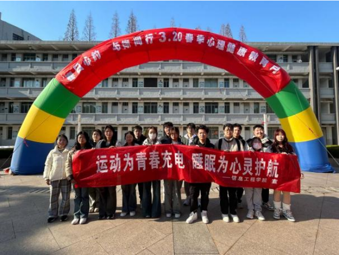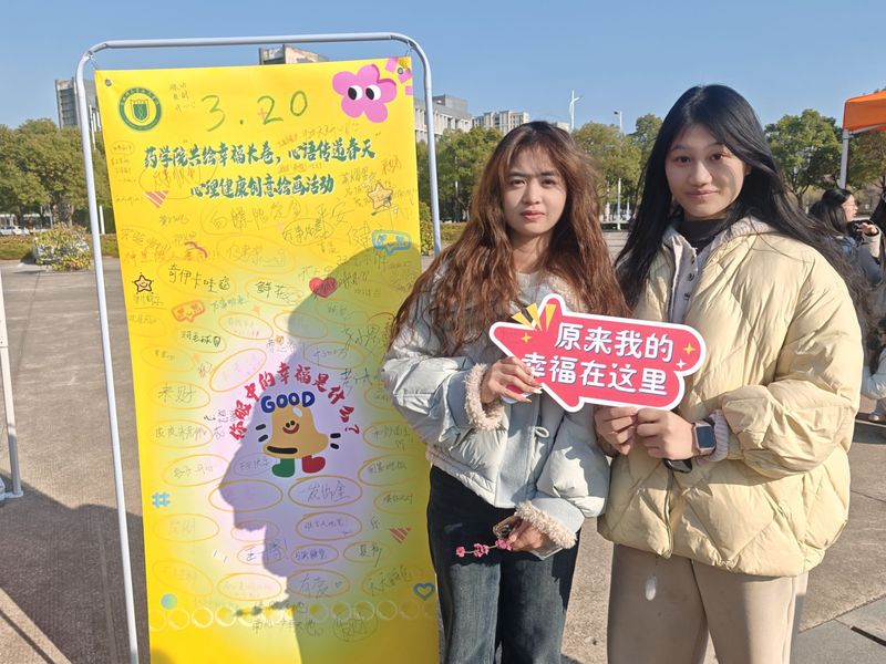 药学院的“共绘幸福长卷,心语传递春天”心理健康活动设置了“写、画、拍”等环节,在海报上写下饱含深情的心语,在长卷画布上进行“一笔接力”,并手持“我的幸福在这里!”的牌板拍照留念。信息工程学院则设置了“睡眠质量云诊断”“乒乓知识擂台”“芳疗香囊工坊”等环节,同学们可以扫码生成个性化睡眠报告,建立健康档案,参与融合睡眠知识竞答与乒乓球接发训练,实现脑力体力双重激活,还可以参与中药配伍、缝制助眠香囊。