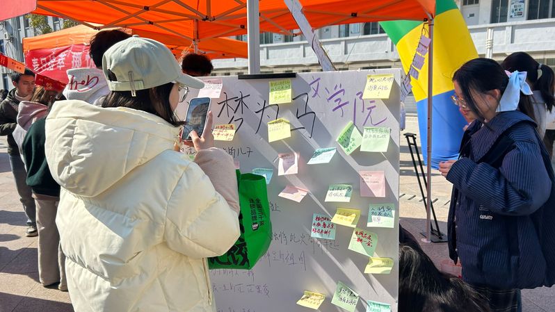 在文学院的展位前,同学们在便利贴上写下自己的感悟,表达对朋友的祝福、对未来的期许以及对生活的感悟传递。诗歌诵读让大家感受诗歌的韵律和意境,并分享对诗歌的感悟。马克思主义学院的活动以“哪吒闹心海 由心辨自我”为主题,设置心理成长宣言区、人际关系互动区、情绪管理体验区、自我认知探索区,围绕哪吒元素设置各类活动,让学生在体验中感受微妙的心理变化。历史与公共管理学院的心理健康主题活动包括“镜头里的诗意盐师”“画纸上的情绪交响”等环节,同学们拍摄或绘制校园美丽春景,并用树叶制作书签,相互交换分享,共同感受春天的美好。音乐学院师生带来的心理主题音乐会,则将现场气氛推向高潮。