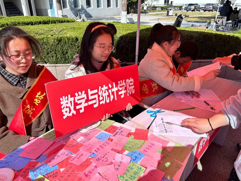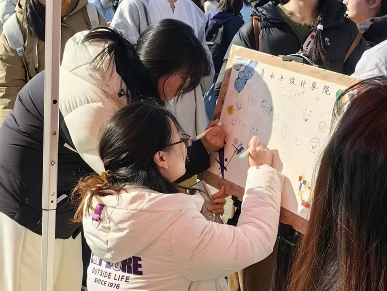 美术与设计学院的师生则通过情绪解压和创作、心灵任务挑战、幸福传递墙等特色互动活动,打造一个融合艺术表达与心理疗愈的暖心空间。教育科学学院将电影艺术与心理疗愈深度融合,引导学生在光影中探索自我成长路径,同学们可以根据心理电影绘制个人情绪光谱图,并将观影感悟写成“心灵书签”,撰写“心理成长契约”,共同构建阳光向上的心理状态。在数学与统计学院的展位前,同学们拿起画笔,描绘心中的笑脸,同时,在小卡片上写下爱自己的方法,并粘贴成“心墙”的样式,分享自己微笑面对困难的故事,发挥朋辈教育优势,展现积极乐观的精神面貌。在化学与环境工程学院的“收集春天的诗句”趣味游戏中,同学们分享并解读经典春日诗句,在“刮刮画”与“植物拓染” 活动中,用画笔绘出心中的春天,以传统技艺将植物纹理印于帆布袋上。