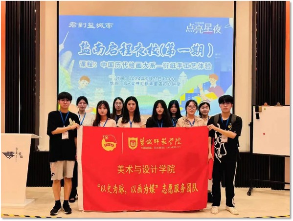 2024年7月,学院组建的“以史为脉,以画为媒”历代绘画大系宣讲团入选2024年“中国历代绘画大系”全国大学生志愿宣讲团。期间,团队成员赴盐城市亭湖初级中学、无锡市梁溪区、南通市古迹遗址及艺术工作坊、常熟市文学艺术界联合会等地,通过采用艺术公开课、主题绘画、表演等形式,开展相关宣讲活动,传递中国绘画精髓,内容涵盖中国古代山水画、花鸟画、中国绘画中的历史景象及历代名画鉴赏等多个方面,系列活动被中国共青团中央官微、中青校园、盐阜大众报等主流媒体报道。