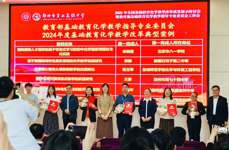 据悉,本次评选活动由教育部基础教育化学教学指导专业委员会具体指导,会议共征集到全国114项教学改革成果,经严格评审,28项成果案例进入终评现场展示环节。经过现场展示与答辩环节,最终共评选出17项基础教育化学教学改革典型案例。