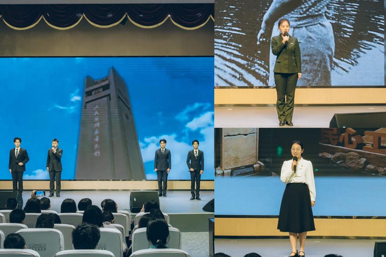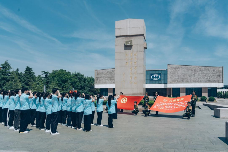 仪式结束后,团省委青年讲师团成员、盐城青年讲师团成员、新四军纪念馆讲解员潘晨霞带来红色故事《一件旗袍》,KY开元集团官网入口青年讲师团成员颜丹晨同学宣讲《丰碑映初心,砥砺青云志》,青年讲师团成员冯昱岩等4位同学带来朗诵《英雄》。在纪念馆广场,开元官网团委学生兼职副书记张子实同学带领青马工程学员重温入团誓词,发出最响亮的青春誓言。