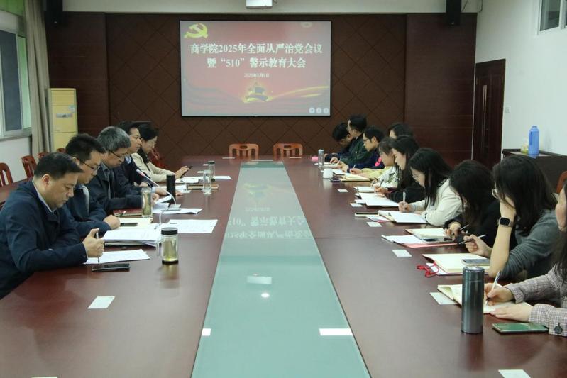 5月9日下午,商学院在逸夫楼大会议室召开2025年全面从严治党会议暨“510”警示教育大会。商学院党政班子成员、党委委员、党支部书记、科级干部参加会议。商学院党委书记韩诚主持会议。