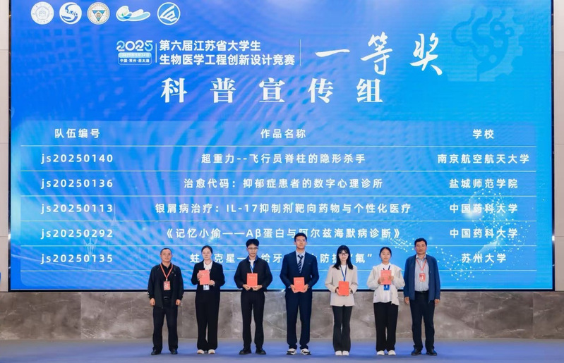 据悉,本次赛事由江苏省生物医学工程学会、东南大学主办。共吸引全省24所高校298支队伍报名参赛,经初赛选拔,79支队伍角逐决赛,53支队伍获三等奖。