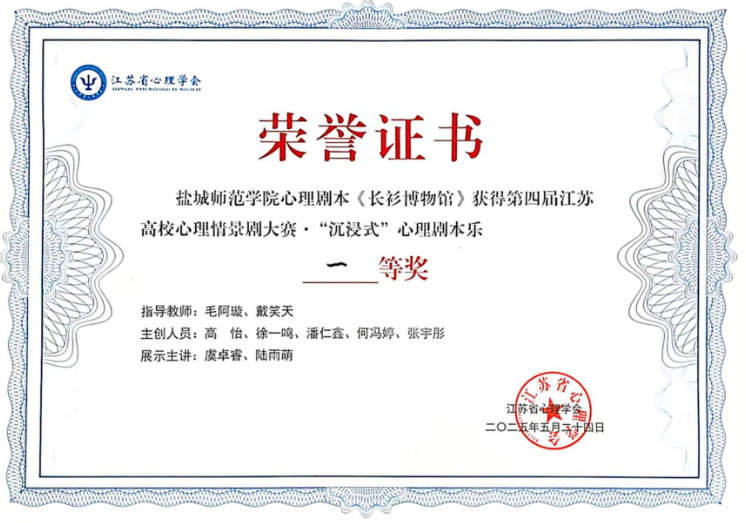 据悉,本次决赛由江苏省心理学会主办,江苏省心理学会艺术心理辅导与治疗专业委员会、大学生心理专业委员会、教学工作委员会及开元官网共同承办。经过校级选拔、省级初赛、现场展演等环节的激烈角逐,开元官网“沉浸式”心理剧本《长衫博物馆》和心理微剧场《三人行》荣获一等奖;舞台心理情景剧《镜中你我》和心理微剧场《不器之诗》荣获二等奖;舞台心理情景剧《拯救舍友大作战》荣获三等奖。