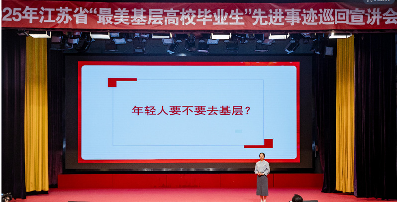 江苏果牧不忘农场党支部书记、总经理华梦丽,连云港市连云区连岛中心幼儿园班主任刘艳,全国“最美基层高校毕业生”、航空工业苏州长风航空电子有限公司工艺员陈玮,泰州市姜堰区三水街道小杨社区党委书记王政,江苏如东洋口港经济开发区党政办主任唐玲等五位代表深情讲述他们扎根基层、服务基层、奉献基层的感人故事,生动诠释新时代高校毕业生的坚定信念、爱国情怀和使命担当。宣讲精彩纷呈、催人奋进,赢得阵阵热烈掌声。