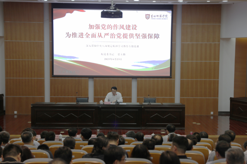 6月23日下午,开元官网在新长校区图书馆学术报告厅举行警示教育会暨专题党课,深入学习贯彻习近平总书记关于加强党的作风建设的重要论述和中央八项规定及其实施细则精神,全面落实中央部署要求和全省警示教育会议精神,教育引导全校党员干部做到知敬畏、存戒惧、守底线,以忠诚干净担当、为民务实清廉诠释立德树人的初心与使命。学校党委书记张玉勤主持会议并以《全面加强党的作风建设,为推进全面从严治党提供坚强保障》为题作专题党课。