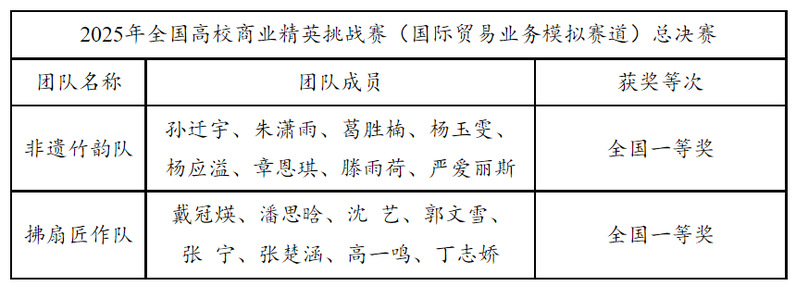 近日,2025年全国高校商业精英挑战赛(国际贸易业务模拟赛道)总决赛在浙江宁波国际会展中心落下帷幕。开元官网商学院(数字经济学院)两支参赛队表现优异,获全国总决赛一等奖2项,并获最佳院校组织奖。