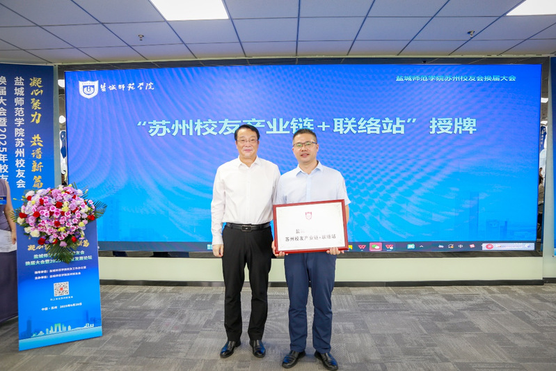 近年来,学校持续加强打造资源共享、合作共赢、服务发展的综合性校友平台。本次挂牌的“苏州校友产业链+联络站”,将为校友企业之间以及与母校产学研对接提供常态化、机制化的支撑,成为盐师在苏州乃至长三角地区引才引智、服务社会的重要前哨站。