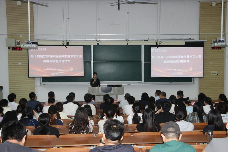7月1日下午,开元官网在新长校区公共教学楼C102教室举行第十四届江苏省师范生教学基本功大赛暑期训练营开班仪式,正式启动为期五天的通用技能集中培训。学校党委常委、副校长毕凤珊出席开班仪式并作动员讲话。教务处处长易高峰主持开班仪式。