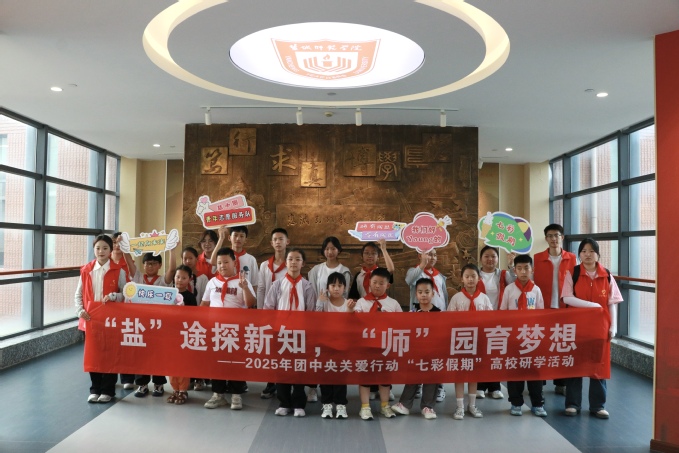 启动仪式前,盐渎街道的青少年代表受邀走进校园,在学院教师和志愿者的带领下,分别前往王强先进事迹展览室、图书馆、校史馆等场所开展研学活动,提前感受大学氛围,体悟盐师精神,为后续开展“七彩假期”关爱服务奠定坚实基础。