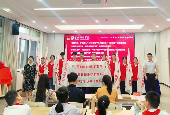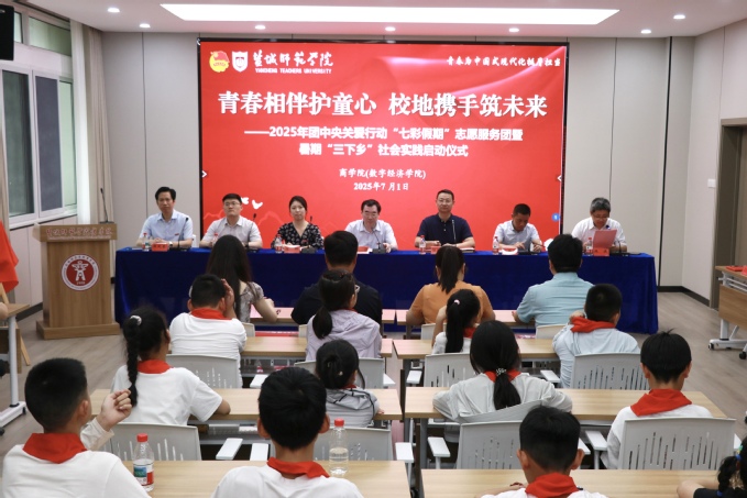 7月1日下午,商学院(数字经济学院)在逸夫楼二楼数字报告厅举办2025年团中央关爱行动“七彩假期”志愿服务团暨暑期“三下乡”社会实践活动启动仪式。学校党委常委、副校长庞波,盐城市红十字会党组书记、常务副会长征汉年出席活动并讲话。商学院党委书记韩诚主持活动。