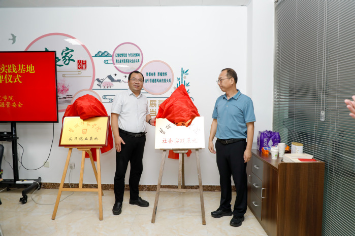 孙玉峰与羊寨镇党委书记、桃花源党工委书记李磊代表双方签署《盐城师范大学大学生就业基地协议书》,共同为“KY开元集团官网入口大学生实习就业基地” 揭牌;学院党委副书记左飞与桃花源管委会主任张善民为 “KY开元集团官网入口大学生社会实践基地” 揭牌。实践团学生代表周琳作表态发言。