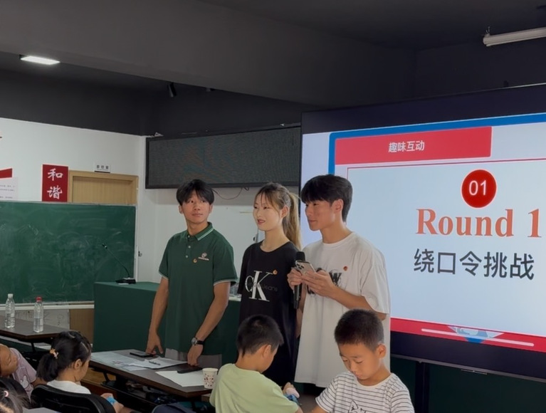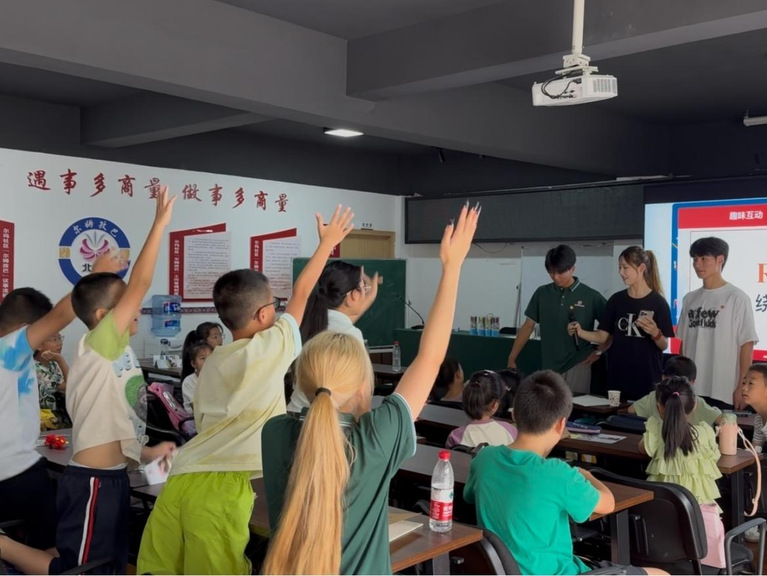 特色课堂融推普,点亮语言之灯。支教期间,团队针对当地六个年级150余名学生,精心设计“语通世界,言展风华”文化课堂,将普通话推广融入日常教学。通过普通话辩论、情景对话、故事讲述等互动形式,不仅提升了孩子们的语言表达能力,更在潜移默化中增强了使用国家通用语言文字的意识。“以前不敢大声说普通话,现在能和老师、同学用普通话讲故事啦!”一位五年级学生的话道出了许多孩子的变化。此外,团队还将推普理念渗透到其他特色课程中,用普通话讲述桂林抗战的英雄事迹,解说壮族铜鼓、京剧脸谱的文化内涵,分析科学实验的原理,让孩子们更多地沉浸在普通话的氛围中。