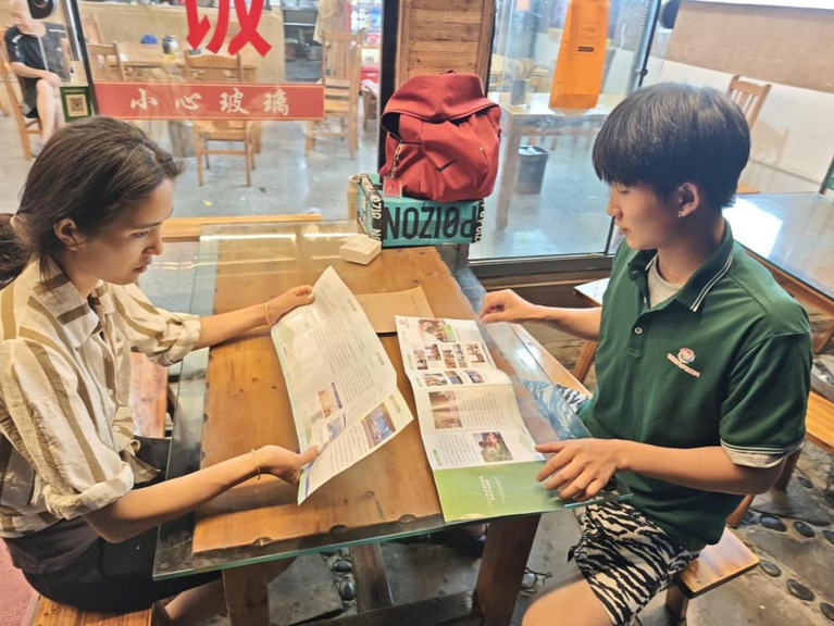 实践团还将推普工作与当地旅游发展需求相结合。在万峰林景区,团队发现不少旅游从业者因语言障碍影响服务质量,便随即开展“一对一”语言帮扶,针对常见发音问题进行专项指导。“现在能用普通话给游客讲解我们的民族文化,游客感兴趣,观看演出的人越来越多了!”景区芦笙演奏艺术家廖德州难掩喜悦。据统计,活动期间共为30余名旅游从业者提供语言培训服务。