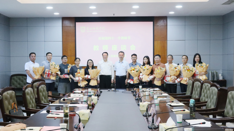 99日下午,在第41个教师节到来之际,学校召开2025年教师节座谈会。学校党委书记张玉勤与来自教学科研管理一线的11名教师代表亲切座谈,共话育人初心,共谋学校发展,共同庆祝节日。学校党委副书记于建江主持会议。