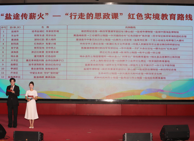 活动高潮处,“铁军魂 盐城红”系列大思政公开课上线发布。80节融合数学、艺术、体育等学科的思政课,将在“盐城教育发布”公众号、“我言新闻”客户端陆续上线,为全市学子送上“生动教材”。最后,盐城幼儿师范高等专科学校学生唱响《中华民族好儿女》,熟悉的旋律中,活动落下帷幕,而青年学子青春追光的脚步,从这次思政活动中再次启程。