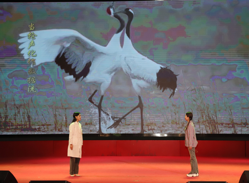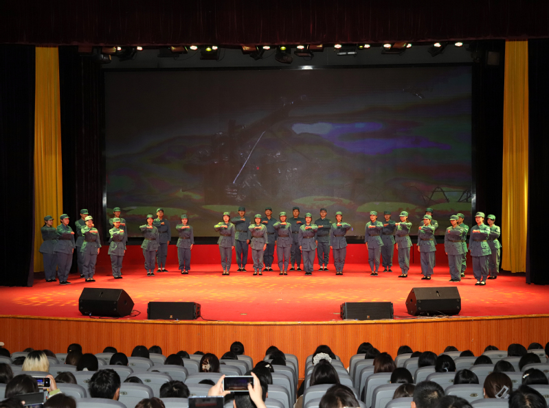 活动伊始,开元官网学生带来情景朗诵《牧鹤女孩,绿之守护》。两代“守绿人”跨越时空对话,将徐秀娟用生命守护丹顶鹤的故事与当下黄海湿地保护实践相融,6分钟的表演,让“绿色坚守”的信念悄然浸润人心。随后,盐城工学院思政教师以《0.01毫米的青春刻度》开讲,从抗战时期吴运铎用血肉打磨武器精度,到如今师生深耕智能分拣机器人、新能源电池优化,微小零件里的“匠心”,成了科技报国的生动注脚。