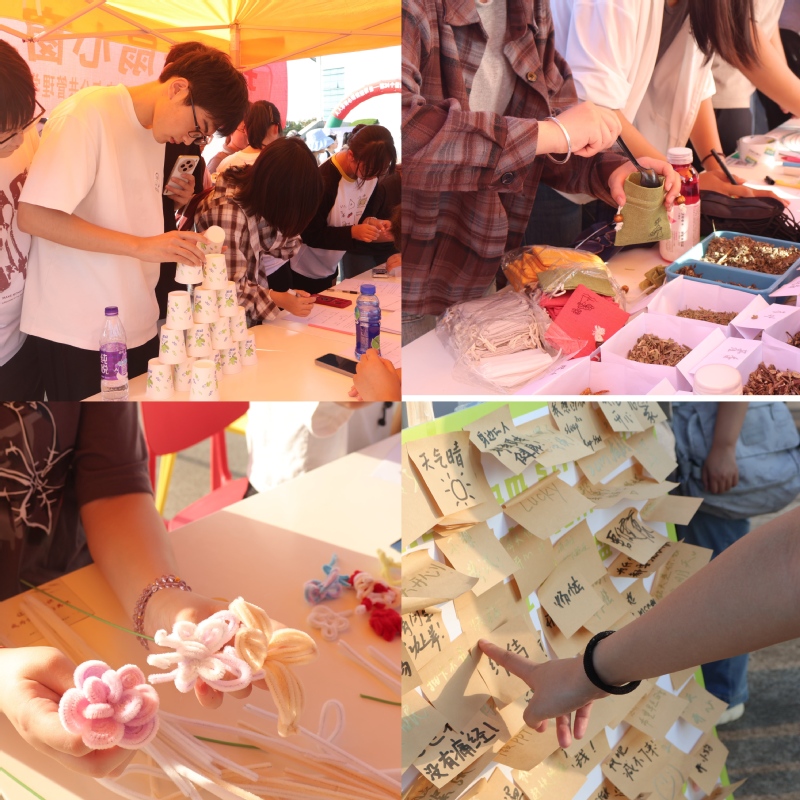 本次活动分为专家坐诊、心理音乐会和广场活动等部分。在专家坐诊区,学校邀请盐城市第四人民医院副院长周爱华,医学心理科主任乐守江、副主任沈素梅以及儿童青少年科副主任顾涛四位医生来校坐诊,为学生提供一对一心理咨询服务。在心理音乐会区,由音乐学院承办的“五音疗愈·身心和谐”主题音乐会为学生带来一场“心理养生”之旅。在广场活动区,各二级学院通过开展情绪树洞、心理问答、心灵手绘、串珠创作等寓教于乐的活动,让参与师生在轻松愉快的氛围中学习心理健康知识、释放压力。