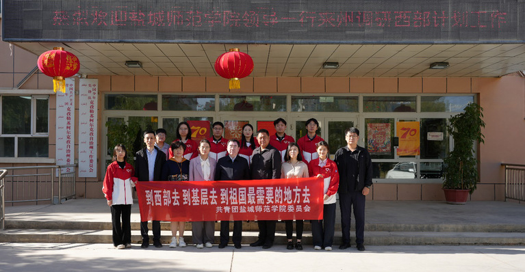 西部计划志愿者代表、教育科学学院2025届毕业生吴大陈发言。他表示,在克州阿图什服务期间,他会努力将支教经验与岗位要求相结合,无论是参与基层治理、助力乡村振兴,还是投身志愿服务,始终牢记盐师人的身份,在实践中锤炼本领,在奉献中实现价值。