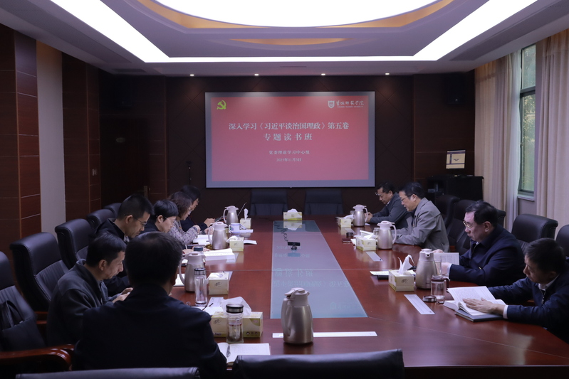 11月3日至4日,学校党委理论学习中心组举办专题读书班暨集体学习研讨会,深入学习《习近平谈治国理政》第五卷。学校党委书记张玉勤主持学习并讲话,党委理论学习中心组成员逐章逐篇领学相关内容。